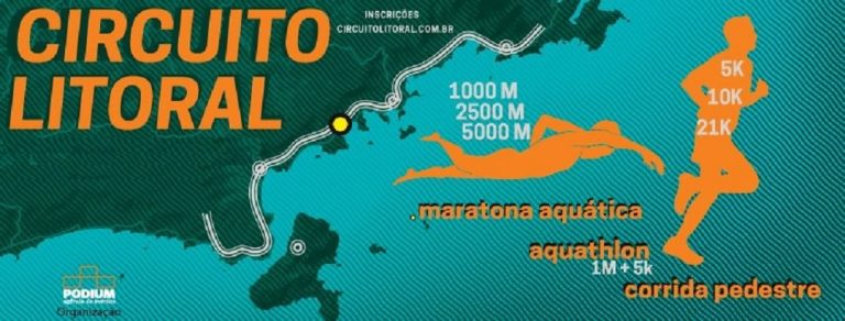 O Circuito Litoral de Maratonas Aquáticas e Corrida Pedestre é uma das provas mais tradicionais do litoral norte de São Paulo. As etapas percorrem as praias de Bertioga, Ilhabela, São Sebastião, Caraguatatuba e claro Ubatuba. São circuitos desafiadores com cenários paradisíacos. Chamada da prova Circuito Litoral Maratonas Aquáticas- 1000 metros-...